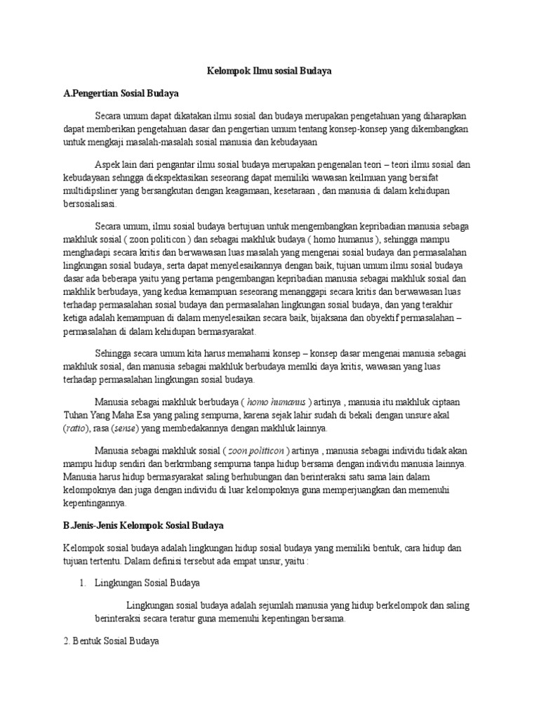 Pengertian Konsep Dan Tujuan Ilmu Sosial Budaya Dasar Ppt Download from slideplayer.info Definisi budaya yaitu semua sistem ide, rasa, karya, tindakan, dan gagasan yang dihasilkan manusia dalam bermasyarakat yang nantinya akan dijadikan klaim manusia dengan cara belajar. Budaya ini tumbuh di tengah masyarakat dan diwariskan secara turun temurun. Dan dalam bidang sosial budaya, adat isitiadat yang telah berjalan secara turun temurun menjadi semakin longgar karena pengaruh budaya barat. Definisi kebudyaan itu sendiri adalah. Budaya memiliki makna yang berkaitan dengan akal, budi, adat istiadat dan tingkah laku manusia. Atau lebih singkatnya manusia membuat sesuatu berdasar budi dan pikirannya yang diperuntukkan dalam kehidupan bermasyaraka. Adapun beberapa definisi dari perubahan sosial dan budaya menurut para ahli yang berkaitan invensi merupakan salah satu proses perubahan sosial dan budaya dimana terdapat penemuan salah satu contoh invensi sebagai proses perubahan sosial dan budaya adalah penemuan alat. Kita sebagai individu senantiasa mengalami perubahan baik secara fisik maupun intelektualitas.