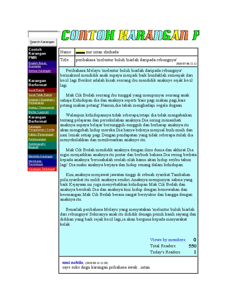 Haji rahman, che'gu kat idrissiah cakap kat aku masa dia keluar dari masjid. 1.sedang rebung baik dipatah, jadi buluh melepuh jari. Alif baru menjangkau usia 18 tahun. Cepat marah sebelum mengetahui perkara sebenarnya. These pictures of this page are about:melentur buluh biarlah dari rebungnya maksud. … dan kita mulakan dengan menolong mommy menukar bedsheet. Melentur buluh biarlah dari rebungnya.@espguitars @music_bliss #espmalaysia #musicbliss #espltdguitars #guitar #espkh #espkirkhammett #khjunior #kh202 #kh203 #kirkhammett #metallica #fatherhood #fatherandsons #allboys. Melentur buluh biarlah dari rebungnya contoh karangan. Mak cik ani mempunyai anak lelaki bernama alif. Posted by bahasaku indah at 12:24 pg. Mendidik anak biarlah sejak mereka kecil lagi. Untuk menyemai nilai yang baik dalam diri masyarakat, kita hendaklah melentur buluh dari rebungnya. Do you guys understand what does this means 1 melentur buluh biarlah dari rebungnya 2 bagai kucing dengan anjing 3 bagai aur dengan tebing.